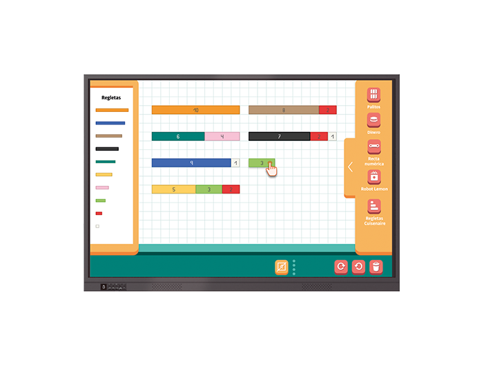 • Pizarra digital. Entorno manipulativo digital con diversas funcionalidades para hacer demostraciones de actividades en gran grupo.