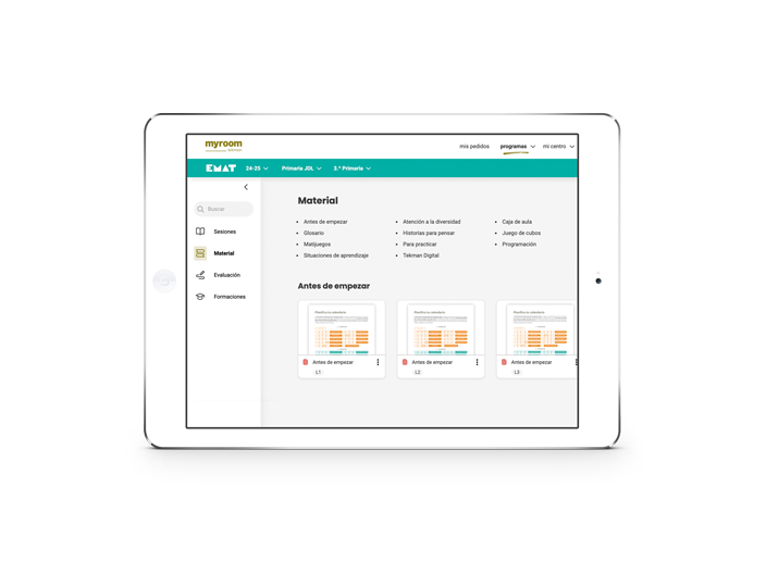 • myroom. Gestor de aula digital con materiales, recursos y herramientas para planificar el curso, preparar sesiones, impartir clases, evaluar y formarte.