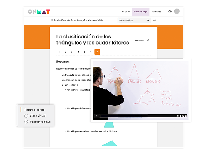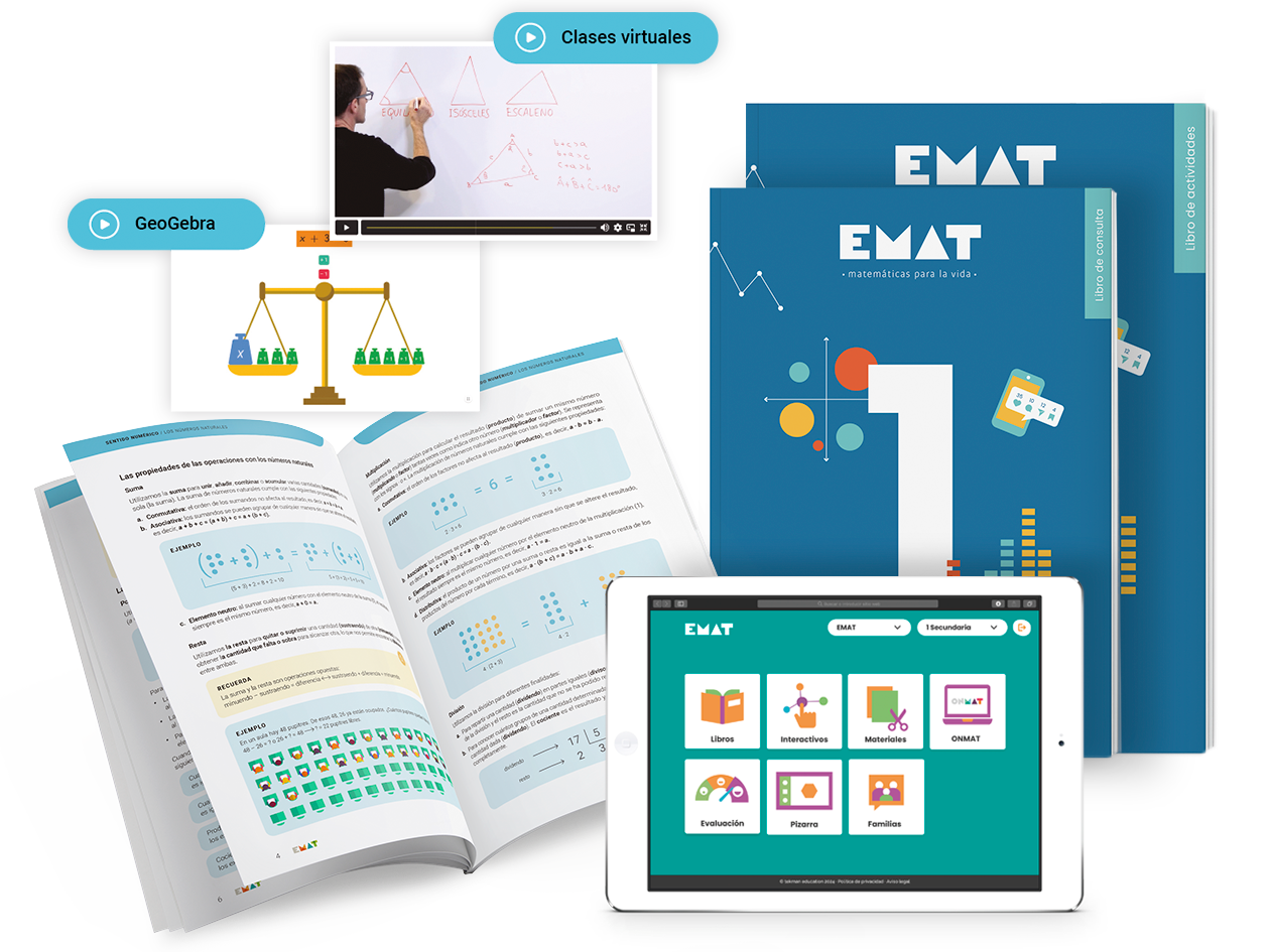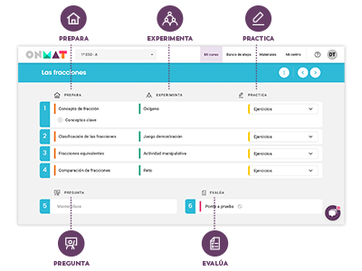 • Plataforma digital ONMAT. Gestor de aula con todos los recursos para preparar e impartir tus clases: secuencias didácticas, actividades, herramientas de evaluación, Libro del alumno, solucionario y mucho más.