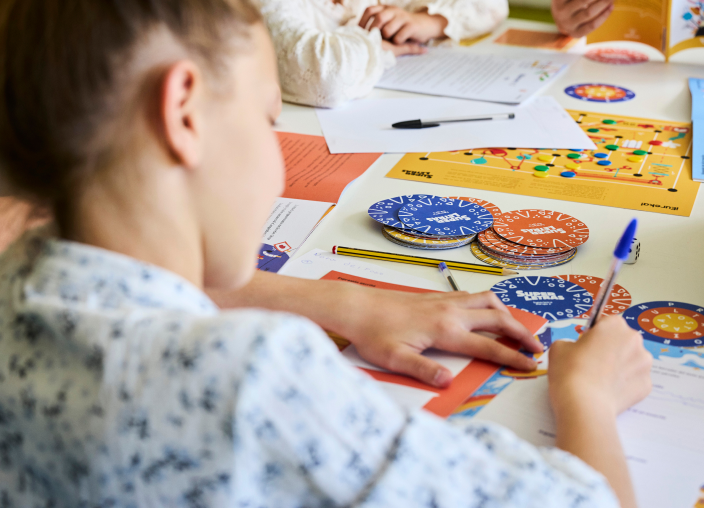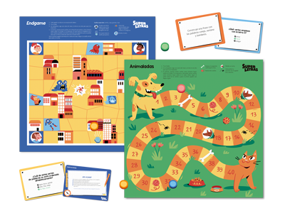 - Caja de aula. Un kit completo con materiales manipulativos y cooperativos adaptados a cada curso: juegos de cartas, tableros, tarjetas, dados y todo lo necesario para los centros de aprendizaje.