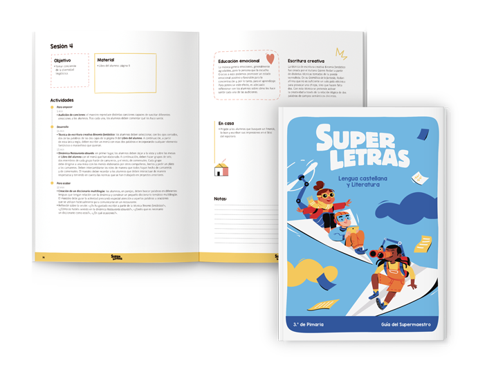 - Guía del maestro. Sesiones completas, estrategias de evaluación, orientaciones de gestión de aula y programación detallada.